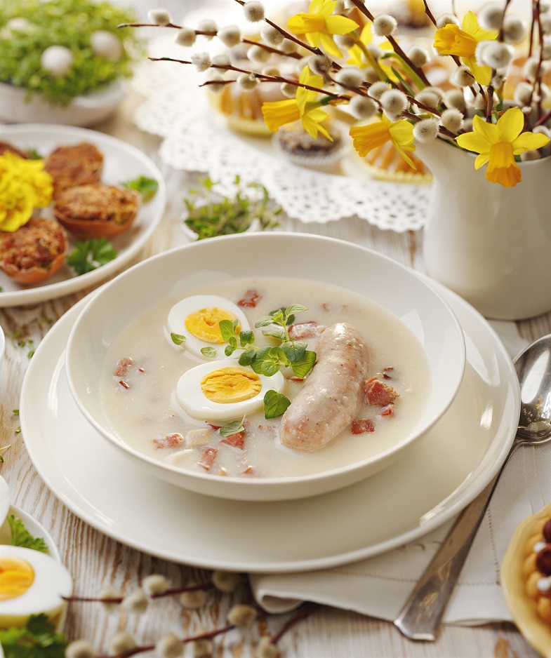 W czasie świąt wielkanocnych bardzo istotną rolę odgrywa śniadanie, które zazwyczaj pod względem serwowanych dań przypomina obiad, a jego obowiązkowym elementem jest kwaśna, jasna zupa, najlepiej przygotowana na bazie tradycyjnego zakwasu. Najczęściej jest to żurek lub barszcz biały – co prawda obie zupy wyglądają bardzo podobnie, ale różnią się metodą przygotowania, która wpływa na smak.