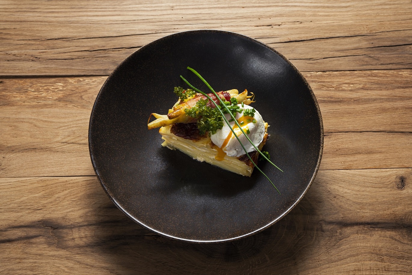 Francuzi również upodobali sobie ziemniaki, o czym świadczy ich obecność w sztandarowych daniach narodowej kuchni. Jednym z nich jest smaczna zapiekanka z ziemniaków w mleku ‘gratin dauphinois’. ‘Gratin dauphinois’ to rodzinne, domowe danie z Delfinatu (Dauphiné), historycznej krainy położonej na południowym wschodzie Francji, która słynęła z produkcji mleka. Zapiekanka na mleku była więc naturalnym zastosowaniem produktu pozyskiwanego przez miejscowych rolników. ‘Gratin dauphinois’ może być samodzielnym daniem, jak również towarzyszyć mięsom czy rybom. Istnieje wiele przepisów na tę zapiekankę: z dodatkiem wędliny, mięsa, sera czy warzyw, ale prawdziwe ‘gratin dauphinois’ to ziemniaki i mleko (lub mleko i śmietana). W tej wersji występuje z fasolką szparagową oraz jajkiem poshe.