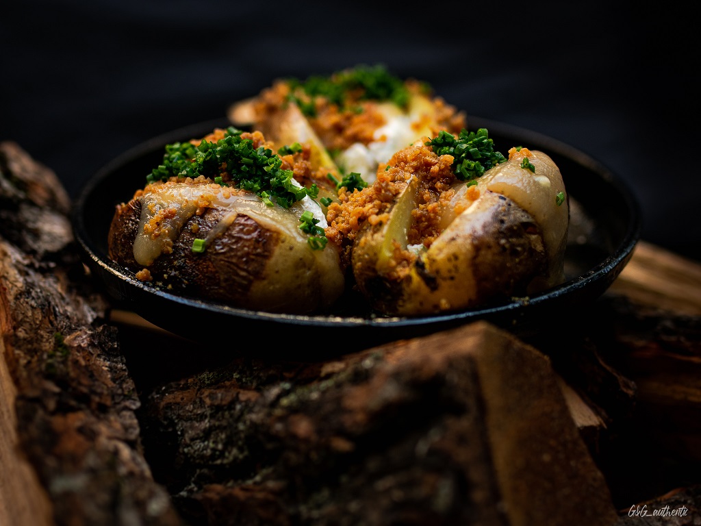 PUREE Z ZIEMNIAKÓW PIECZONYCH W OGNISKU I ZE STEKIEM GRILLOWANYM