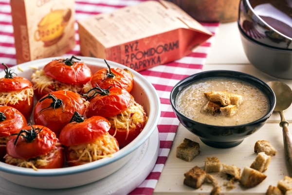 Jak często nasze dzieci zadają pytanie: ”Mamo, co dzisiaj na obiad? A po otrzymaniu odpowiedzi pada z ich strony znajome: „Znowu to co zawsze?”. Nawet najlepsza potrawa jedzona zbyt często może znudzić się dorosłemu, a co dopiero dzieciom. Dlatego warto puścić wodze fantazji i stworzyć obiad, którego wcześniej nigdy nie podawaliśmy. Warzywa to idealna baza do wszelkich dań, a ich umiejętne skomponowanie stwarza wiele możliwości do przygotowania pysznych oraz zdrowych potraw. Zupa cebulowa z serii Dania Babci Zosi, o kremowej konsystencji podawana z grzankami to doskonała propozycja na pierwsze danie, zupy innej od wszystkich. Ryż w zestawieniu z pomidorami i papryką – tej samej serii – może być podstawą do stworzenia dwóch propozycji pysznego dania głównego. Pierwsza to pomidory faszerowane ryżem z chrupiącą skórką i delikatnie roztopionym ostrym serem, z dodatkiem oliwy. Pieprz i sól podkreślą pikantność sera. To wyjątkowa propozycja dla każdego łasucha. Równie interesującą opcją na obiad jest ryż w mleku kokosowym z pieczoną dynią. Kurkuma, cebulka, czosnek, ostra papryka to niezwykle aromatyczna mieszanka. Lekko upieczona dynia z delikatnym ryżem zagwarantują niezapomniane doznania kulinarne.