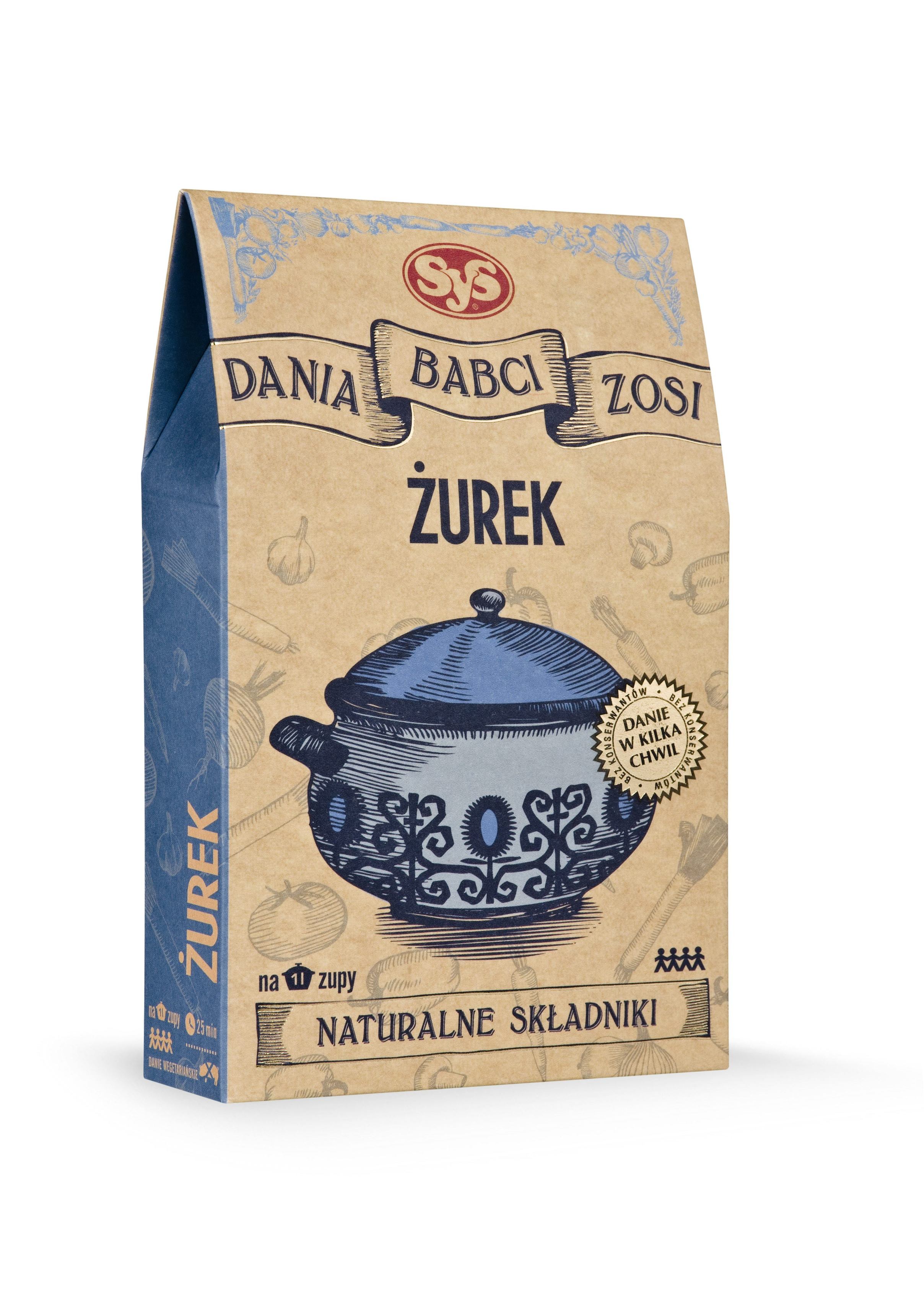 Dla smakoszy tej polskiej potrawy, którzy nie mają czasu na jej przygotowanie, firma SyS ma w zanadrzu tradycyjny polski żurek z serii Dania Babci Zosi. Wystarczy torebkę z warzywami wsypać do 750 ml (trzy szklanki) zimnej wody, dodać łyżkę masła lub oleju i gotować przez 20 minut. Z kolei mieszankę z przyprawami, dołączoną do opakowania, należy dokładnie wymieszać w szklance zimnej wody i dodać do zupy. Wszystko gotujemy jeszcze 5 minut. Żurek najlepiej smakuje, gdy do każdej porcji dodamy łyżkę kwaśnej śmietany. Dla tych, którzy lubią ostrzejsze wydanie żurku, polecamy wersję z łyżeczką chrzanu. Na koniec dodajemy ugotowane na twardo jajko. I gotowe.